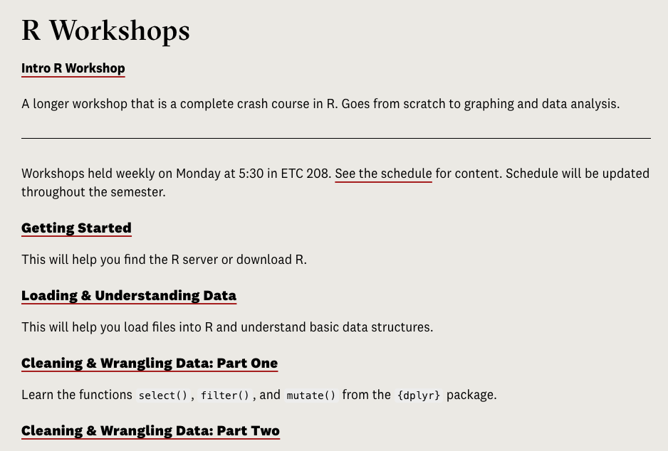 On the Data@Reed page there is a link to a series of interactive online workshops, similar to this one, to go through steps in more detail.