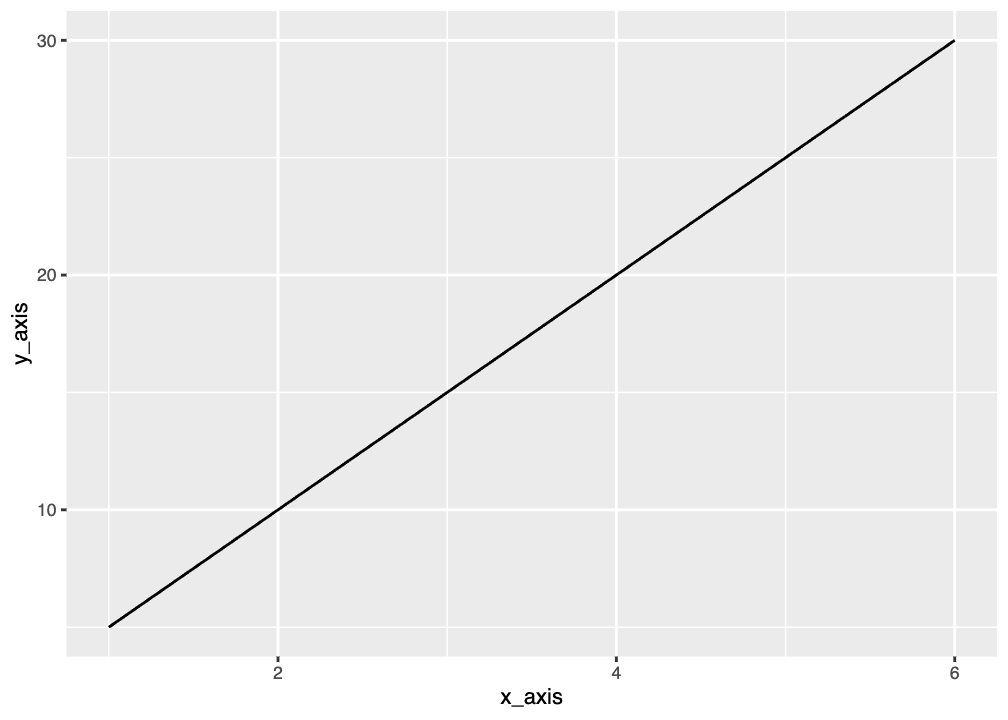 We can use the same code in the previous graph example to make a simple scatterplot. All we need to do is change one thing: instead of geom_point() we’ll use geom_line() as the type of graph.