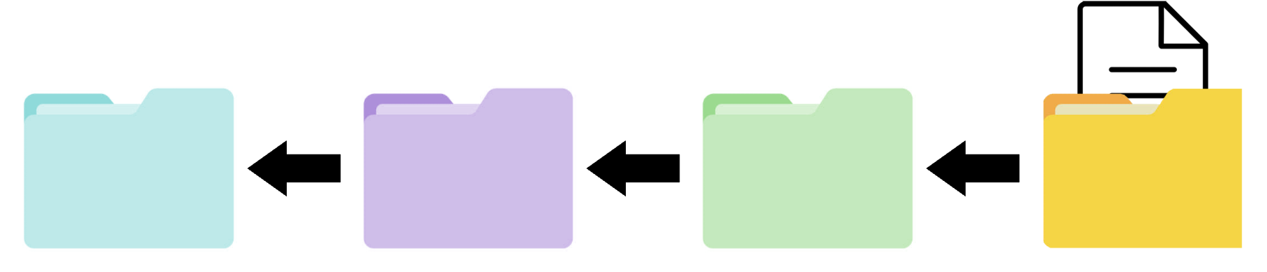 The file you are trying to get to is inside the yellow folder, which is inside the green folder, which is inside the purple folder, which is inside the blue folder. Your file path would be: